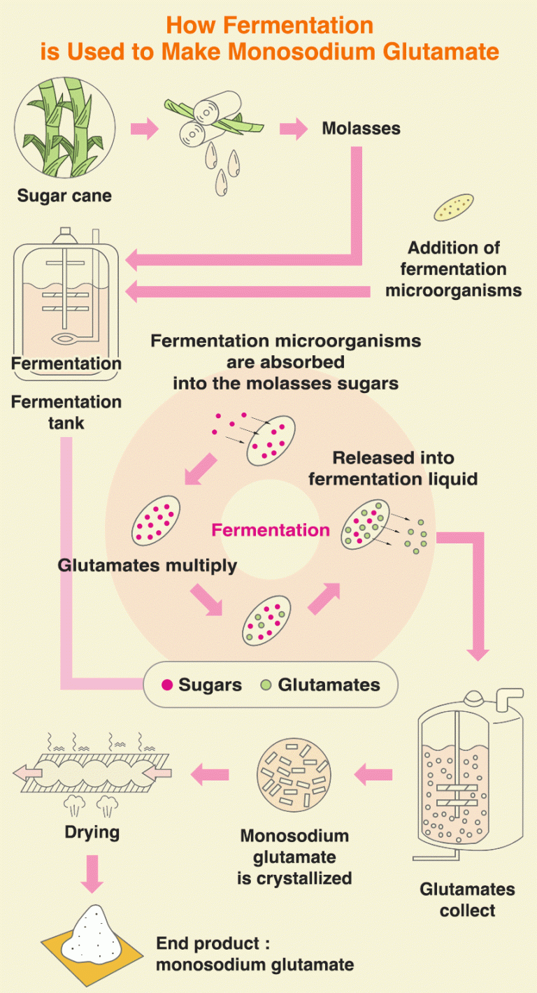 - Production: Commercial MSG is made through a natural fermentation process of plant-based sources like sugarcane, corn, or cassava, similar to how yogurt or vinegar is produced.